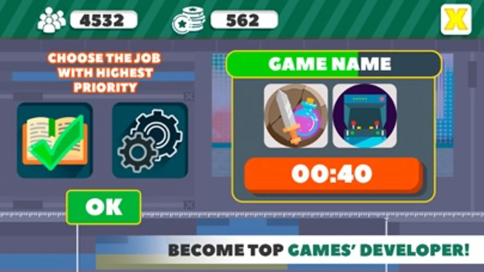 Make interesting and funny games, broaden the horizons of your game dev career, earn money and have fun playing Game Maker Tycoon: Developer Studio!