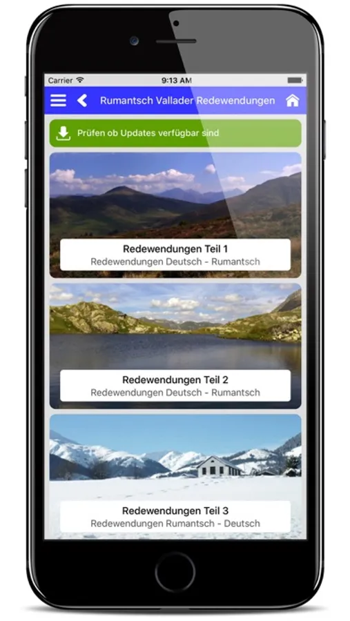Die App Redewendungen Rumantsch Vallader beinhaltet etwa 800 Redewendungen und Sprichwörter aus dem Alltagsleben.
