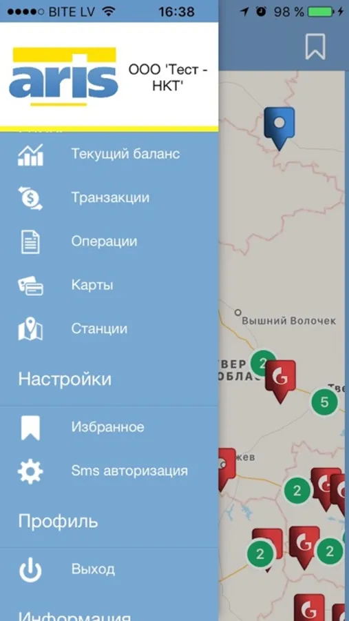 Building a route to the required petrol station from the current location. Viewing information about each petrol station: