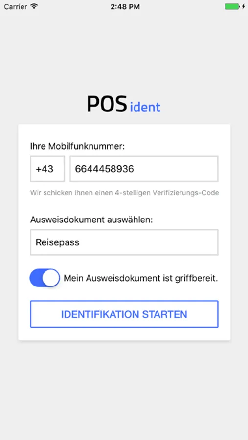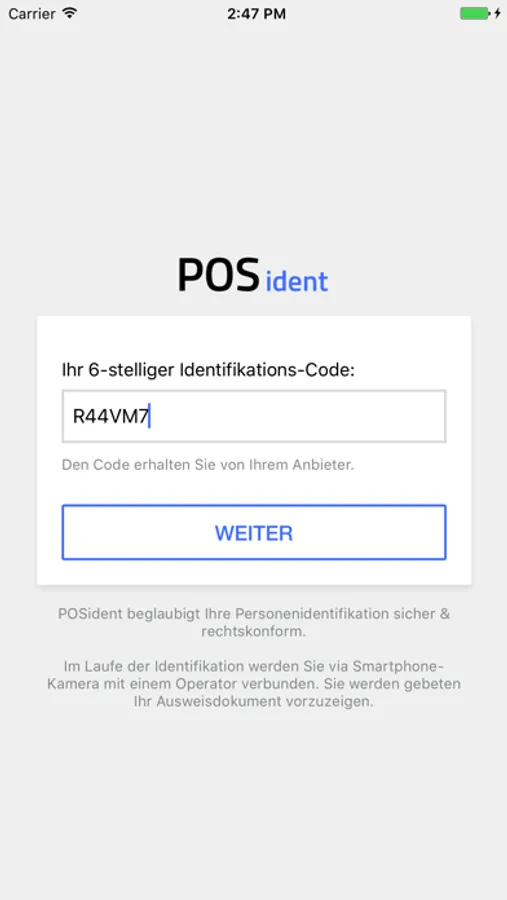 Mit der Eingabe des zugesendeten Verbindungs-Code startet die Videoverbindung. Anhand Ihres Ausweises werden sie vom Call-Center Mitarbeiter, rasch, bequem und gesetzeskonform identifiziert. Dabei werden Aufnahmen Ihres Ausweises und Ihres Gesichts angefertigt.