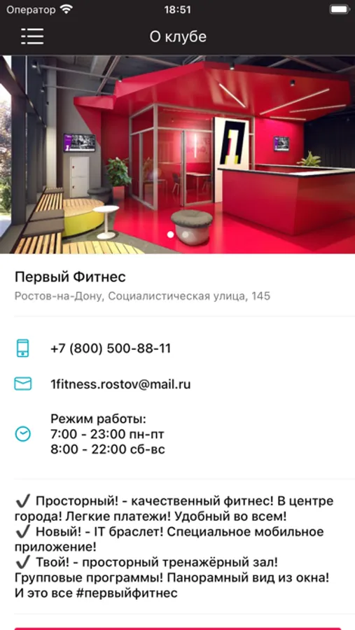 С помощью приложения вы можете следить за новостями, расписанием клубов, оперативно получать информацию об изменениях в расписании и специальных предложениях.