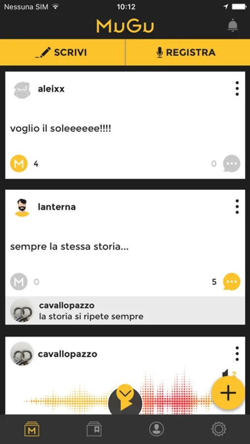 Sfoga la tua rabbia sulla bacheca di MuGu, scrivi o racconta quello che ti passa per la testa, dividi e condividi il tuo stress con la nostra community alleggerendoti da tutti i pesi che ti porti dentro.