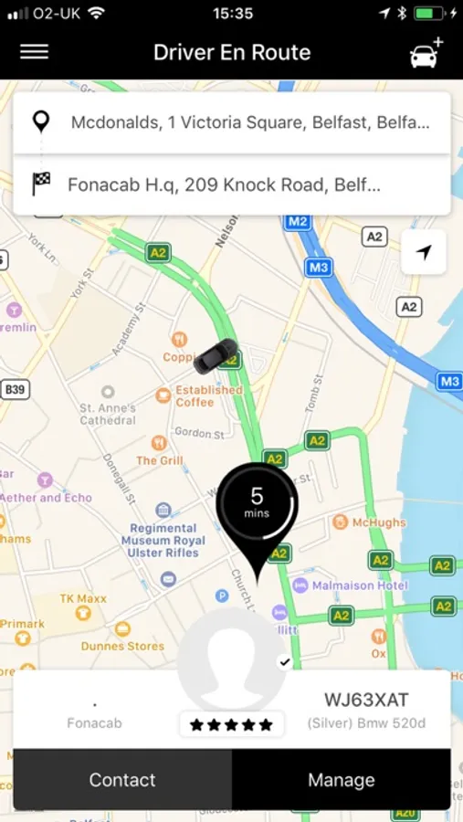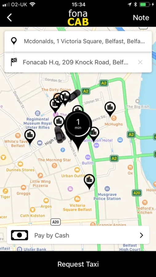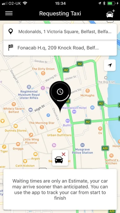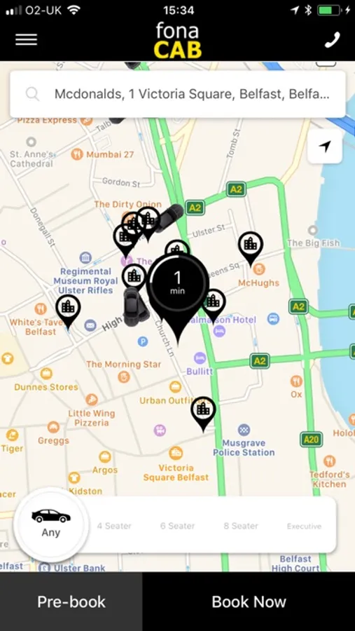 New from the largest taxi firm in Belfast, you can now place bookings directly on our map, and see how many available cars there are nearby in live time.