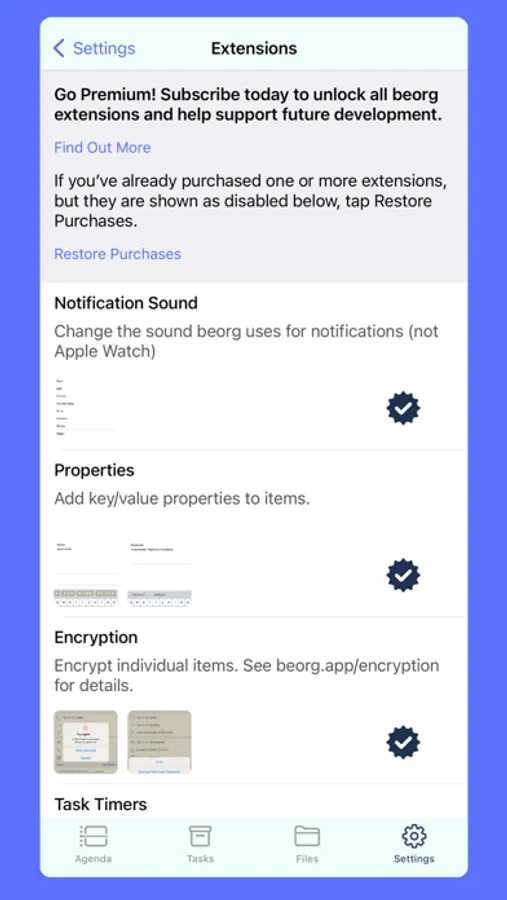 beorg is free to use with optional extensions available as individual in-app purchases - or become a beorg Premium subscriber to unlock everything.