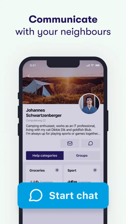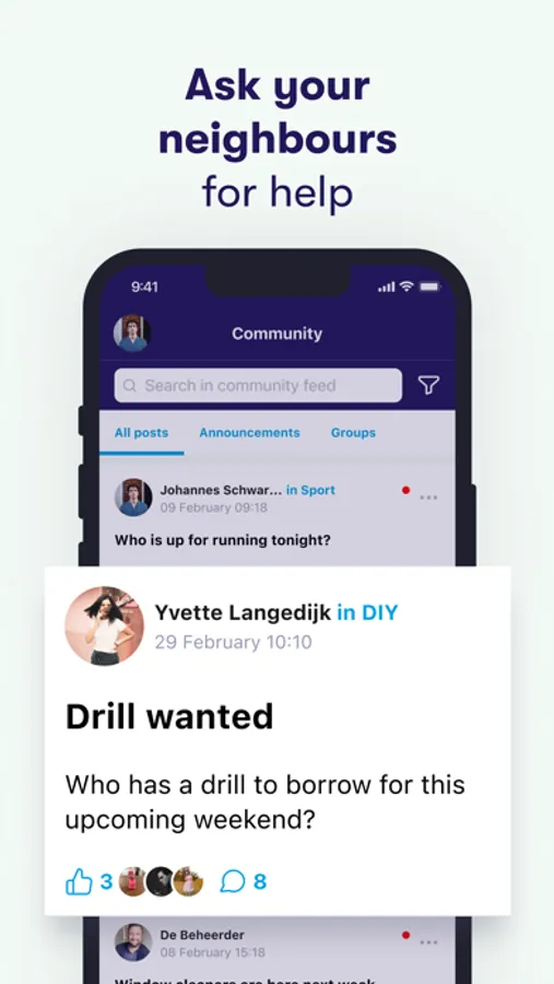 Ask your neighbors for help or advice or to lend something, and share practical tips with each other. Indicate in the help categories what you can help with.