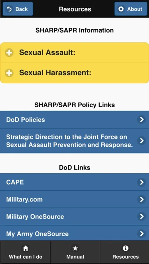 The app is also to inform personnel who to report their assault or harassment to, if they chose to report. The app is a great tool and form of communication for any soldier.