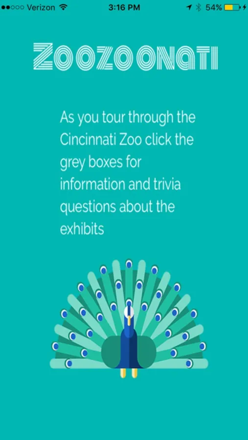 Feed your curiosity and enhance your visit to the Cincinnati Zoo with Zoozoonati, an interactive mobile application that allows the user to gain information about the animals at the Cincinnati Zoo,while also answering questions about the various exhibits. Press the grey buttons located top of the exhibit name on the map and then you will be able to scroll though the pages of animal information. In the last couple pages of the section, if the user is at the Cincinnati zoo, questions will appear. If the user answers a certain number of questions correctly the corresponding badge on the home screen will change to display an animal and if they get one more question correct the badge will display the exhibit name and the animal icon. Users will only be able to answer questions when they are in the specific exhibit at the zoo.The research for Zoozoonati was done by Mrs. Waldbillig's 5th grade science classes and the application was developed by Shiva Devarajan, Rujula Kapoor, and Almaz Ashirkulov.