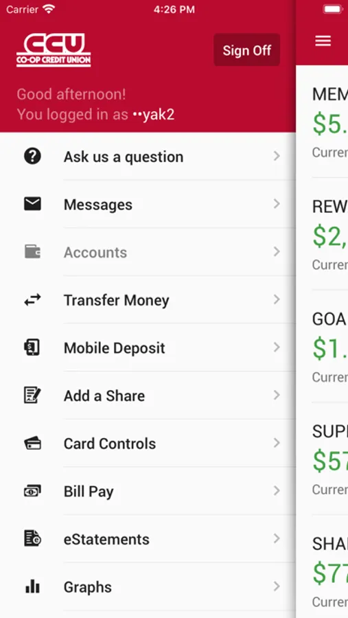 CCU Mobile allows you to check balances, view transaction history, transfer funds, and pay loans on the go!