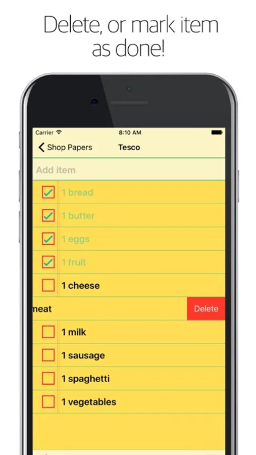 ● Delete items or shop list