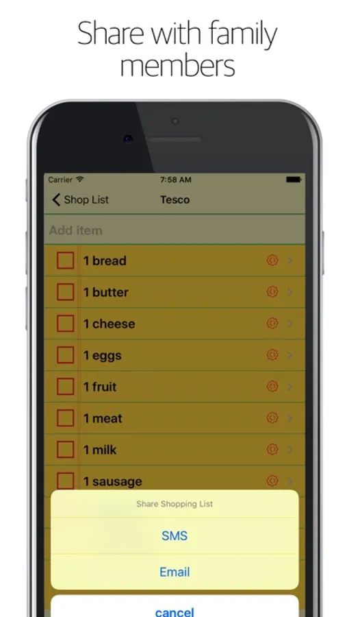 ● Share shop list with family members via SMS or email