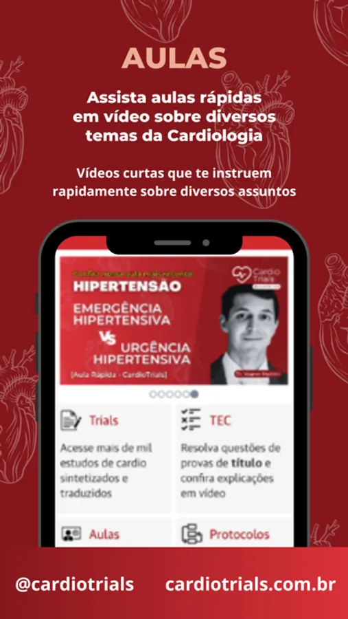 - Aulas Curtas: assista aulas rápidas sobre diversos temas da cardiologia quando precisar se atualizar ou revisar assuntos.
