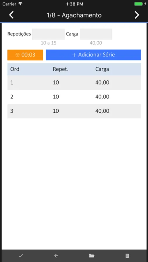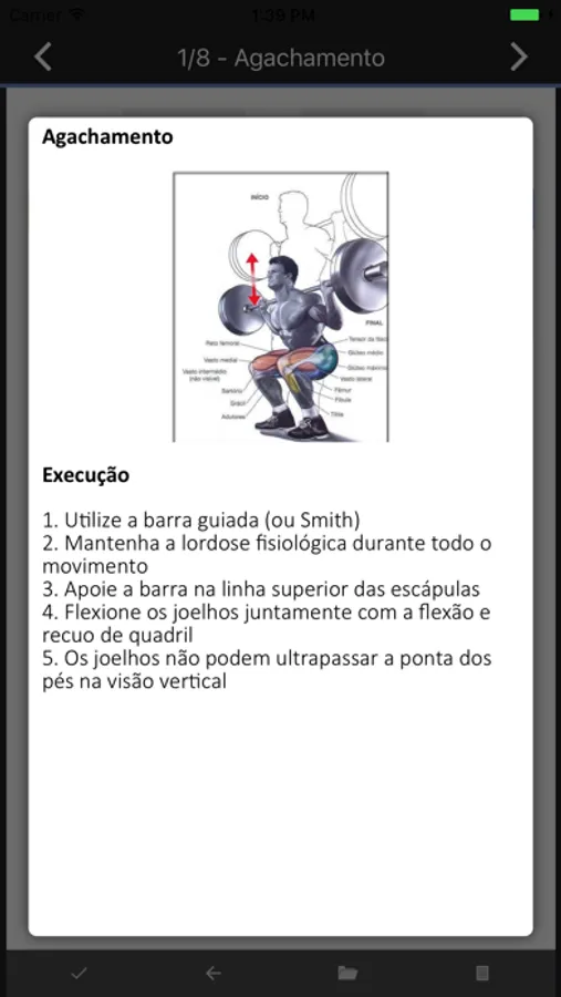 - Execução de treinos (coletar dados de séries e repetições realizadas, controlar o tempo de descanso entre as séries e visualizar forma de execução do exercício);