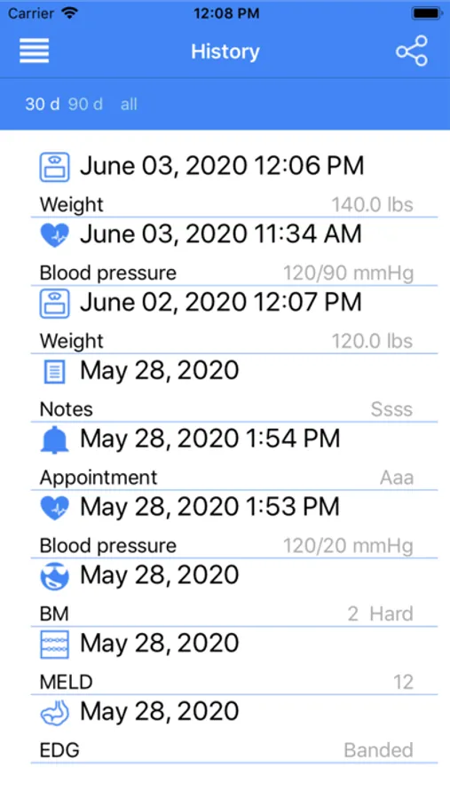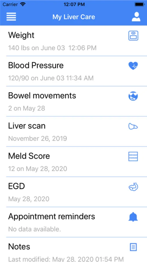 My liver care helps you take control of your health. You will be able to follow your daily weight, BP and number of bowel movements. The dates of your EGD and liver scans will be stored. You will be able to keep a record of your medications. Dates of your upcoming appointments will be saved.