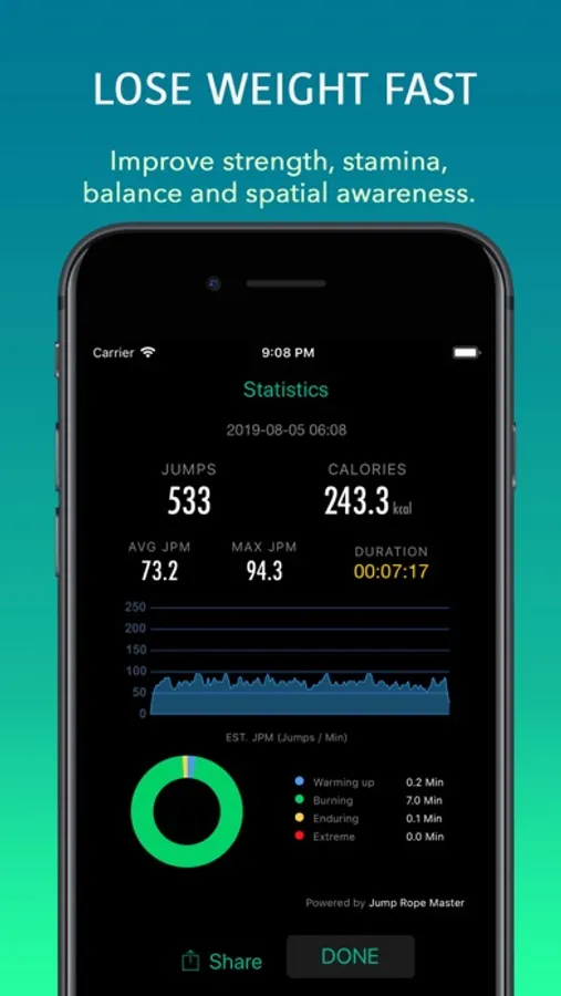 With the Jump Rope Master app, you can automatically track your daily jumps and calories burned, making exercise a regular habit in your life.