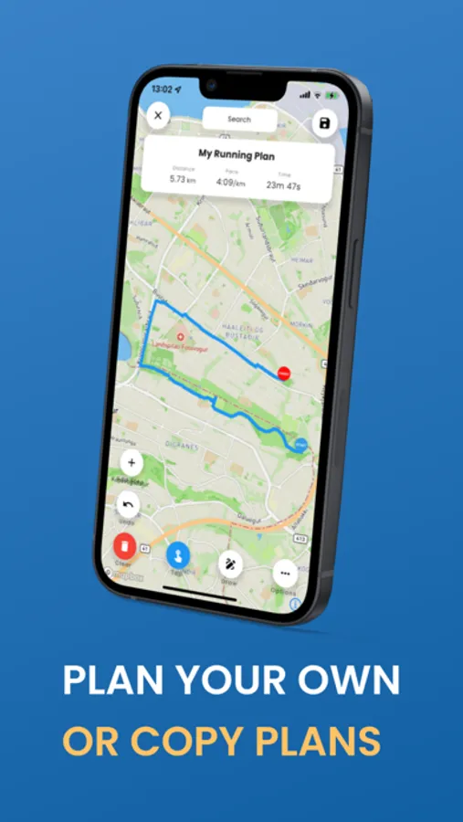 - Run: Plan your route on a plan, plan your pace, distance, time, and different segments.