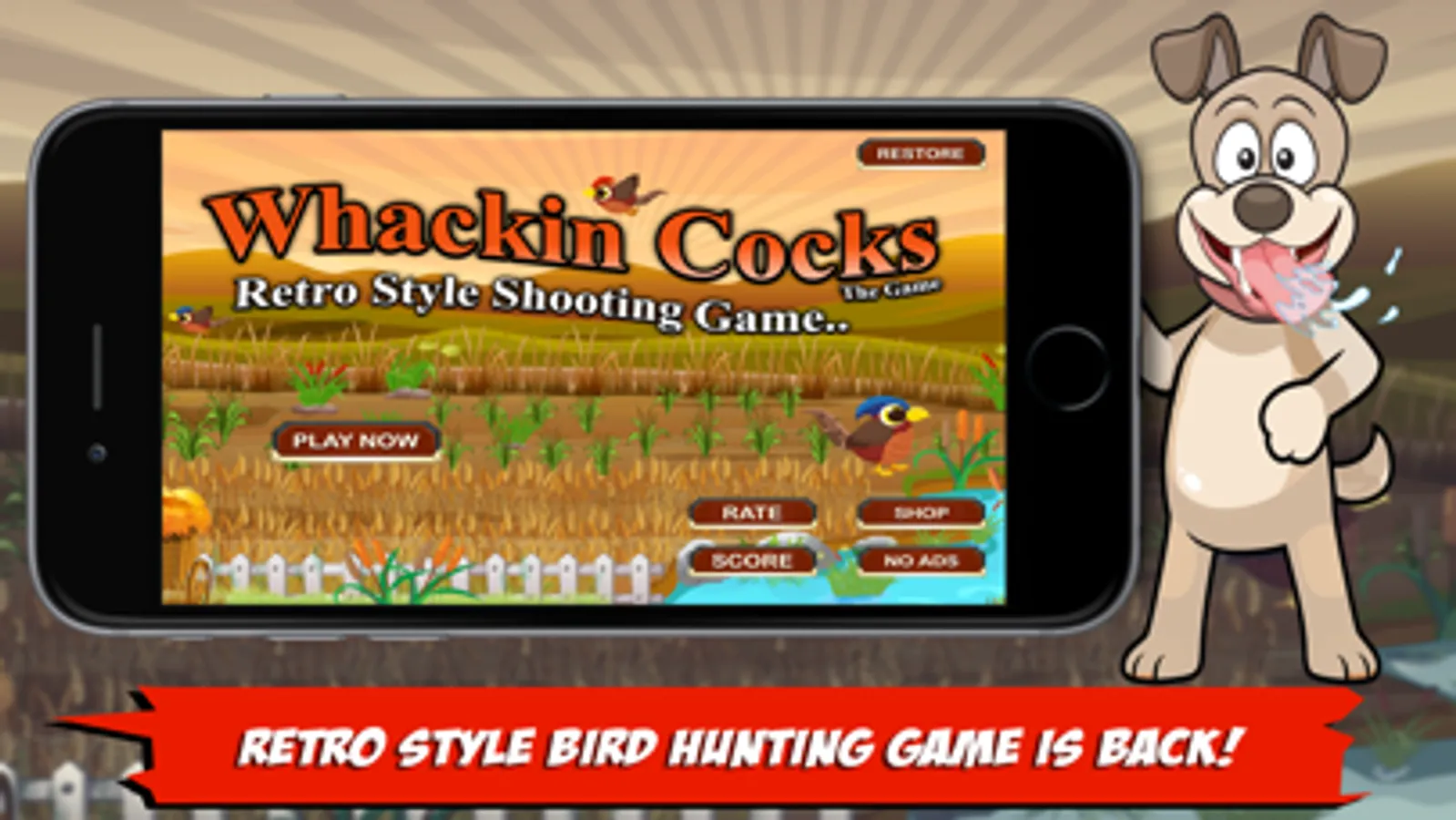 IT'S TIME TO HUNT! LOCKED AND LOADED! LETS GO!! Whackin Cocks The Game is all about the fun of hunting and shooting pheasants. Enjoy this Retro Style Shooting Game... It's Back!! This is truly an App with a greater purpose!