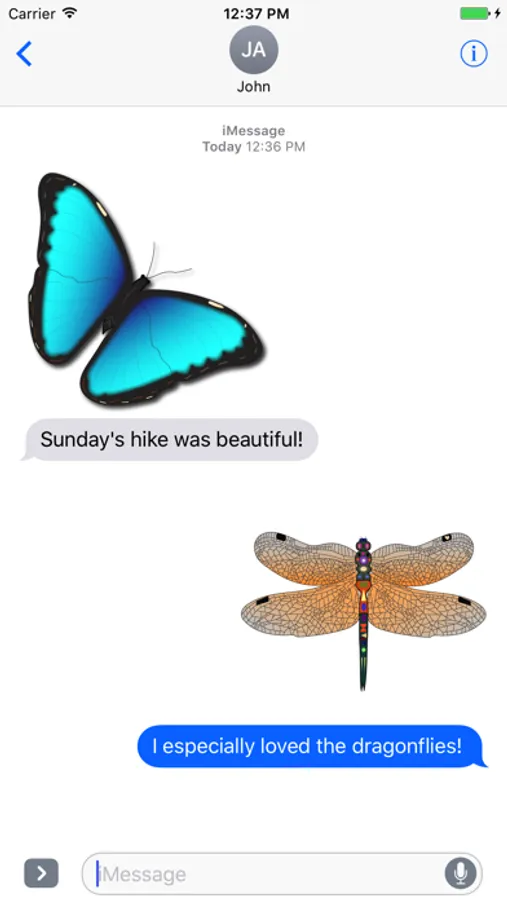Butterflies, Dragonflies and Hummingbirds, there is no better way to welcome nature and all that it brings to us! There is a Regal Monarch, dazzling Tiger Swallowtail and an iridescent Blue Morph in the butterfly group. The dragonflies are uniquely designed to use geometric balance and beauty as only the life affirming Dragonfly can do! There is an Amber, Sunset and Aquamarine version all appealing and beautiful to the eye and heart. The Ladybug rounds out the pack bringing quiet elegance to your texts and messages of hope, inspiration, love and support to your friends and family. Enjoy, these year round and remember our updates with new stickers are free to you!