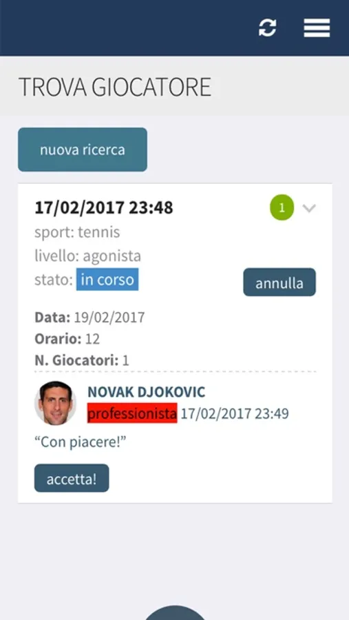 Da questa applicazione è possibile vedere le caratteristiche del circolo, le notizie riguardanti la vita e le attività gestite, controllare l'andamento dei tornei e, per i soci, prenotare un campo, contattare un maestro per una lezione o cercare un compagno di gioco del proprio livello.