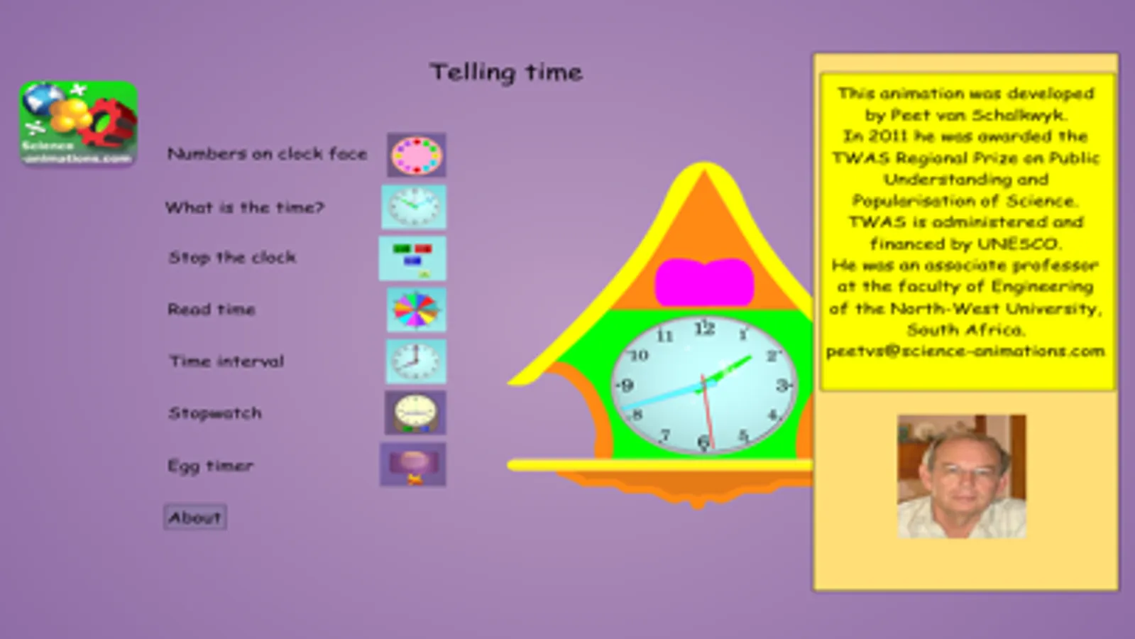 Science Animations: Telling Time Animation is for young learners that need to learn to tell time. They can play with the interactive clock and test their skills with a number of games available.