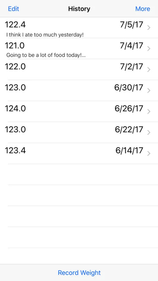Weight In, we does not need your email address, we not need you to sign up for some web service. It does one simple thing and it does it well. It lets you quickly record your weight, and get on with your life.