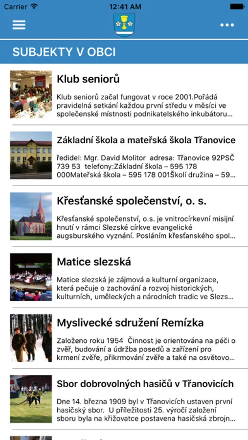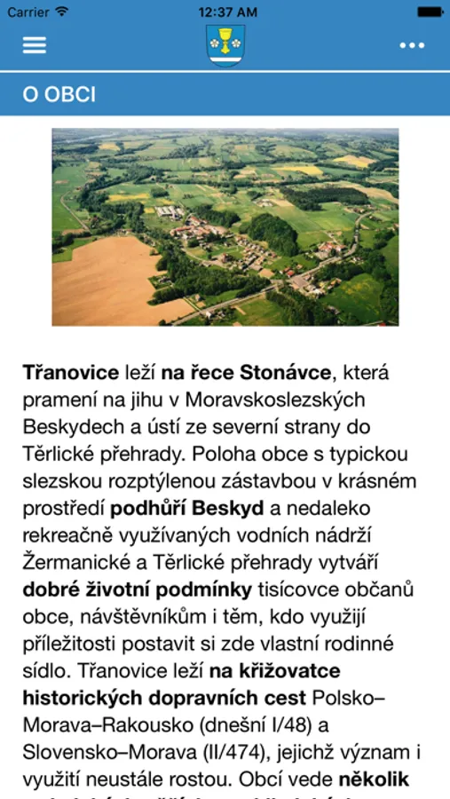 Mobilní aplikace Obec Třanovice Vám poskytne veškeré potřebné informace o naší obci. Najdete zde aktuální zprávy o dění v obci, kalendář akcí, užitečné kontakty a informace o úředních hodinách. Nabízí rychlé navigování, volání či odkazování na weby.