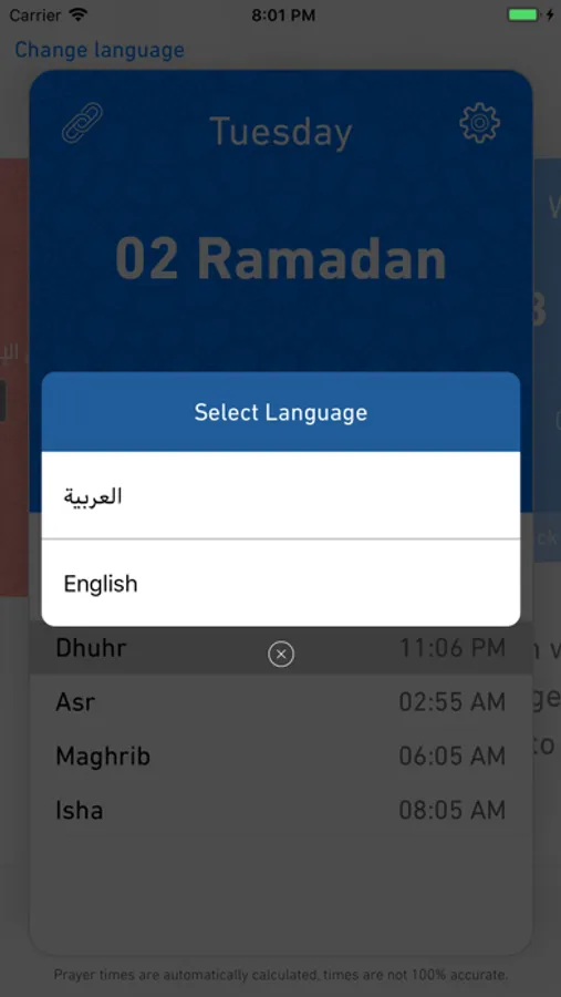 • Fasting times (Imsak and Iftar) during Ramadan.