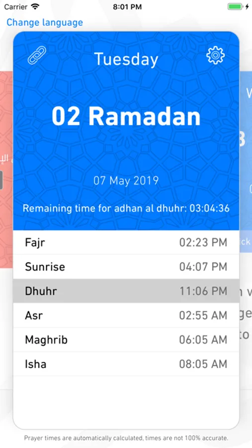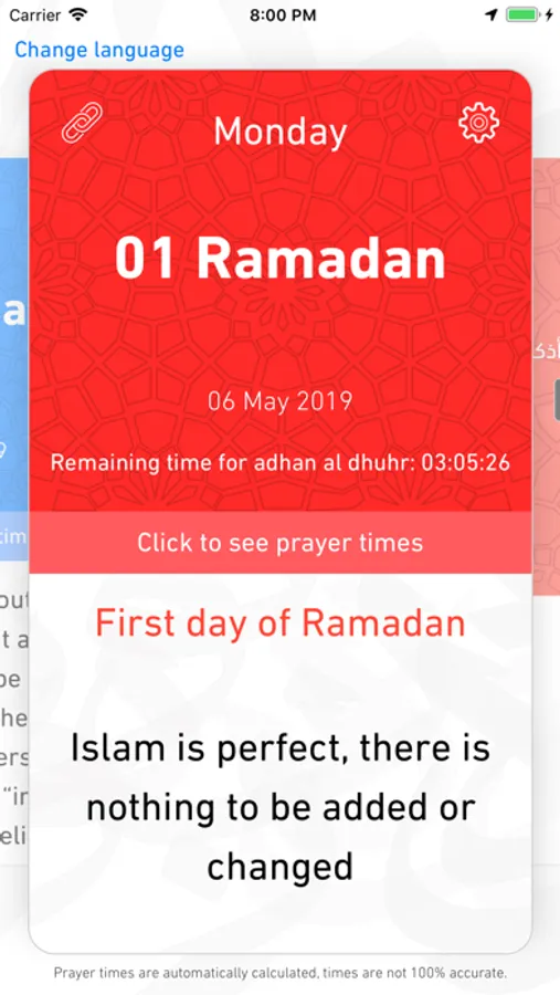 Prayer times & calendar app for accurate prayer times based on your current location.