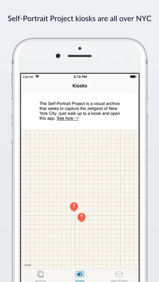 The Self-Portrait Project (SPP) is an interactive art, social change, and commerce project whose mission is to empower people in the creation and curation of their own images. SPP photo kiosks are located throughout New York City and at events nationwide. Locate one and control the kiosk camera using your phone and this app.