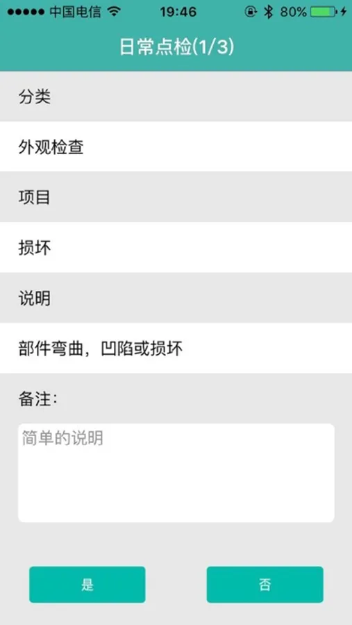 此 APP 是一款叉车点检程序,使用移动端蓝牙连接车载控制器,通过 APP 发出相应指令,对叉车进行各项检查,并将检查结果记录至服务器,以供后续维修保养参照。