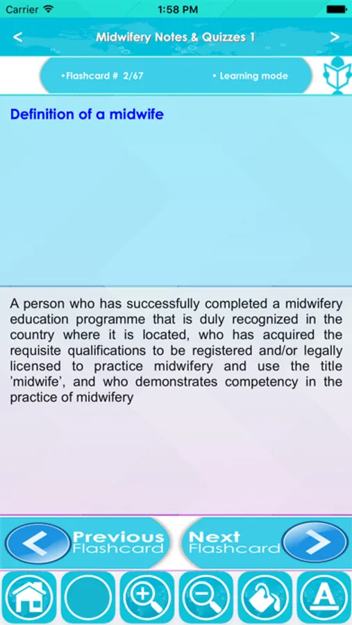 This app is a combination of sets, containing practice questions, study cards, terms & concepts for self learning & exam preparation on the topic ofMidwifery.