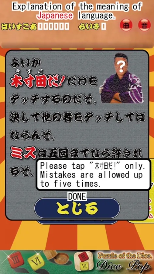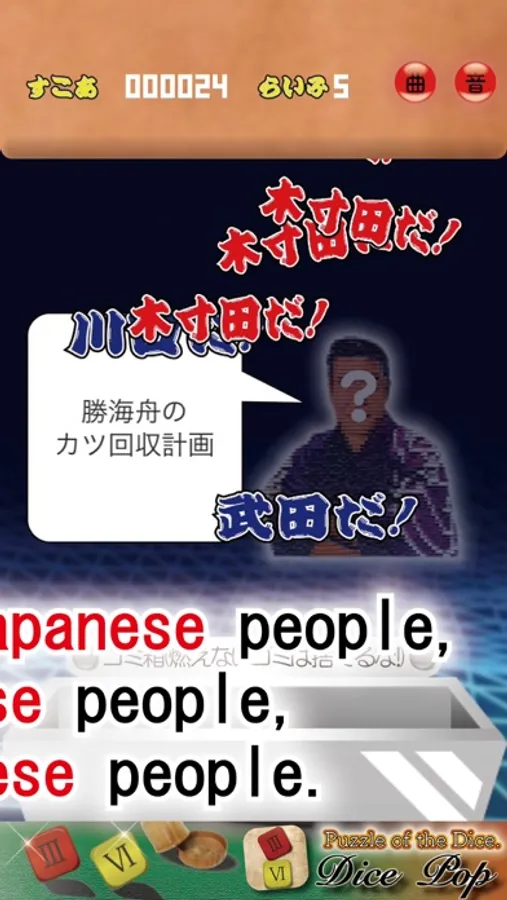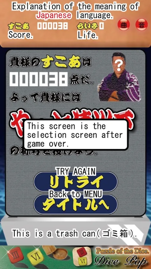 If you do not tap "木寸田だ!" and it reaches the trash can(ゴミ箱), "らいふ(life)" will decrease.