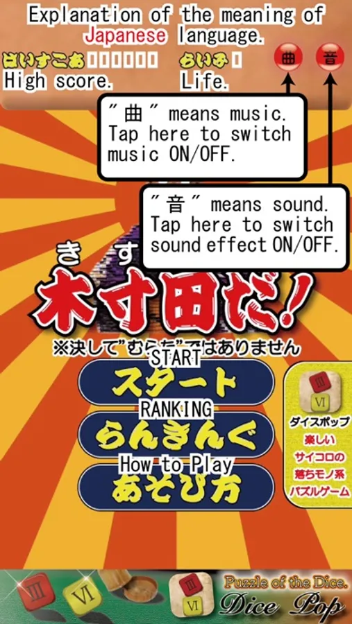 Besides, do not tap other hieroglyphs(Kanji). If you tap, "らいふ(life)" will decrease.