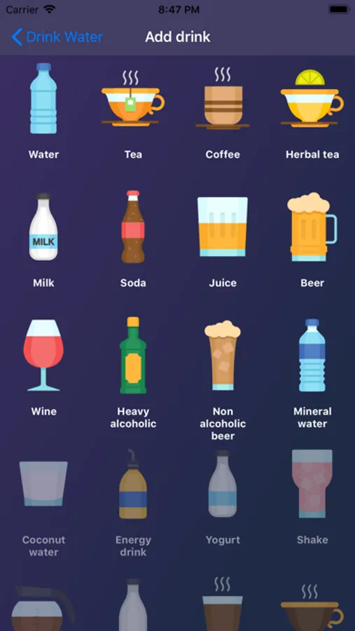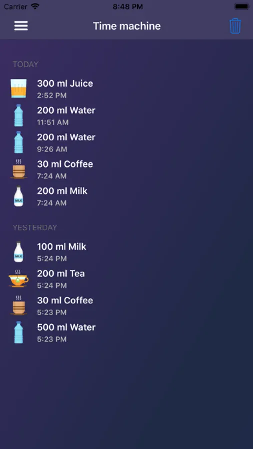 - Daily history will remind you what you've been drinking today.