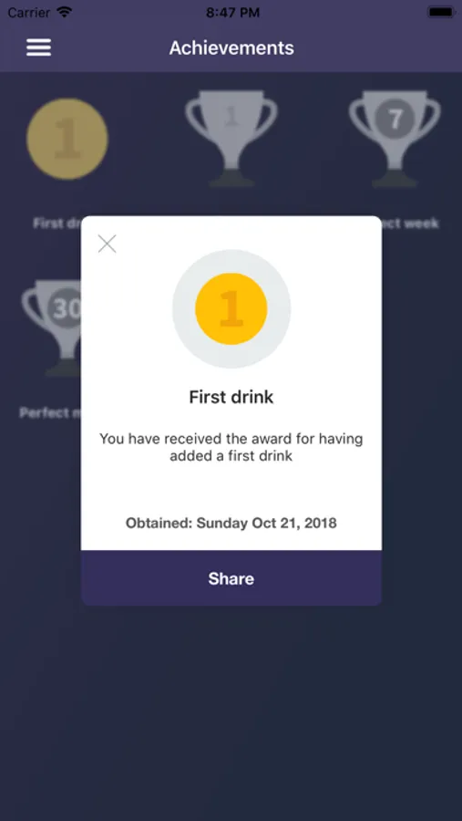 - You will be awarded for your achievements. Every day you will receive an award when you have completed your daily, weekly or monthly goal. Share the awards received with your friends and family so they can see your progress and take example.