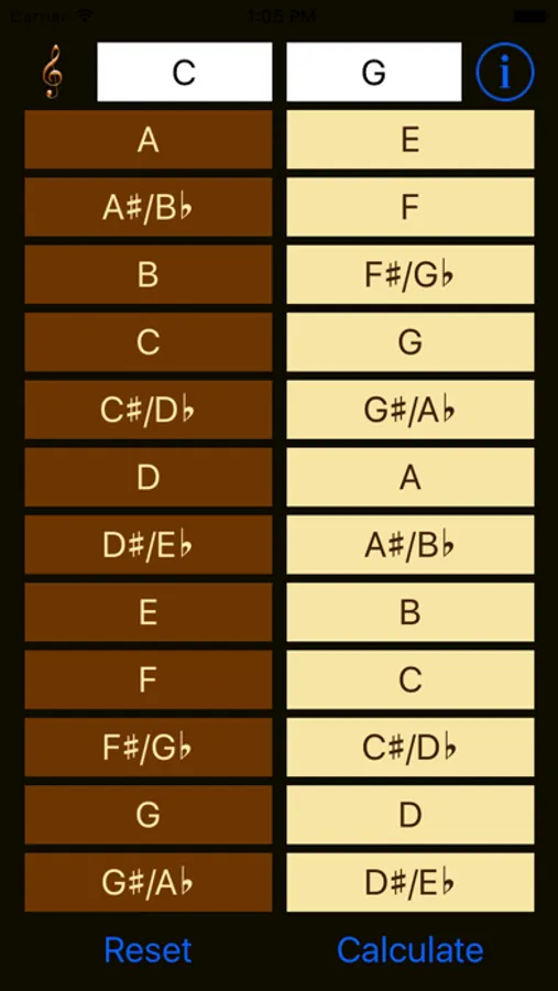 You choose in the left column the original key and in the right column the new key and then hit calculate. You will get a table that lets you transpose the entire song at once.