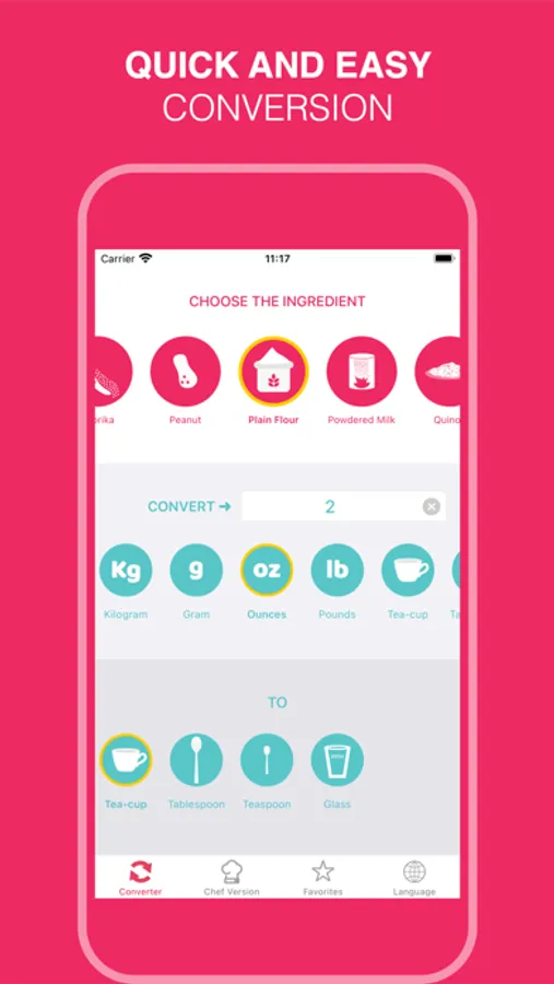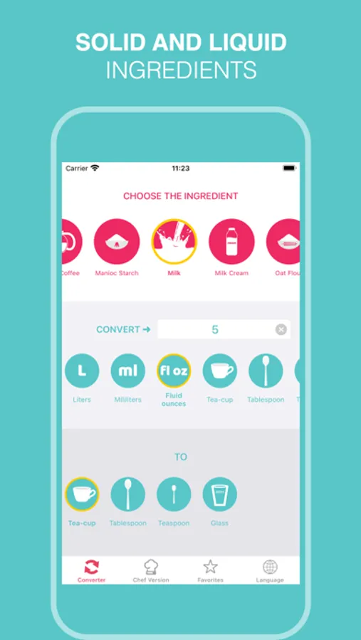 Also can convert to glass, tablespoon, teaspoon and vice versa.