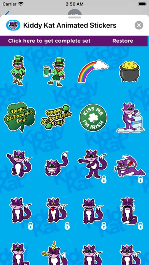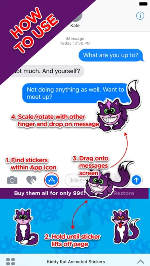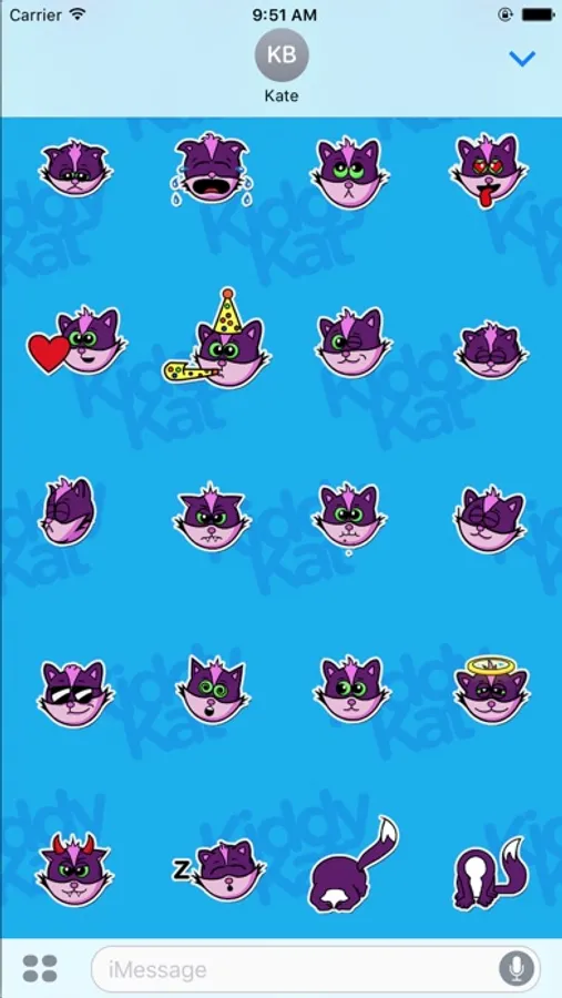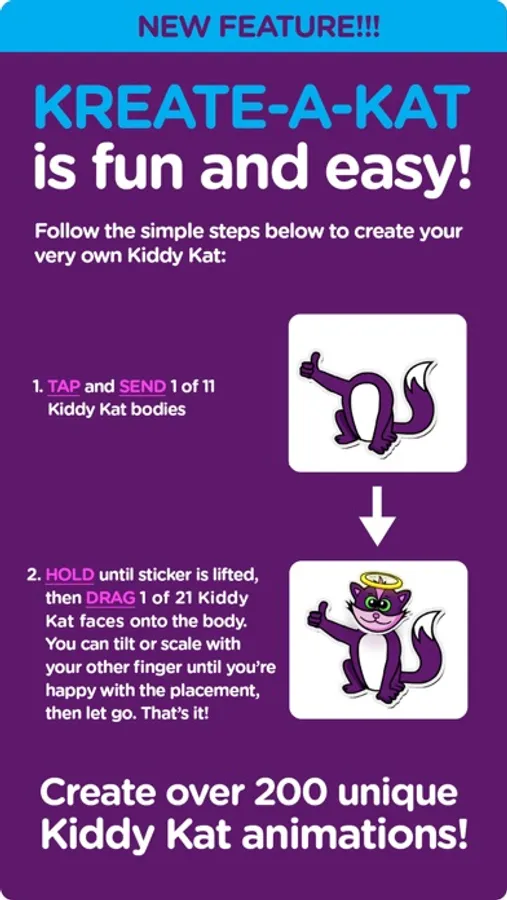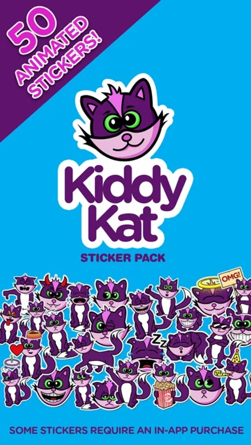 Over 50 cute, animated Kiddy Kat stickers let you express a wide range of emotions. Download today and add some excitement to your text messages!
