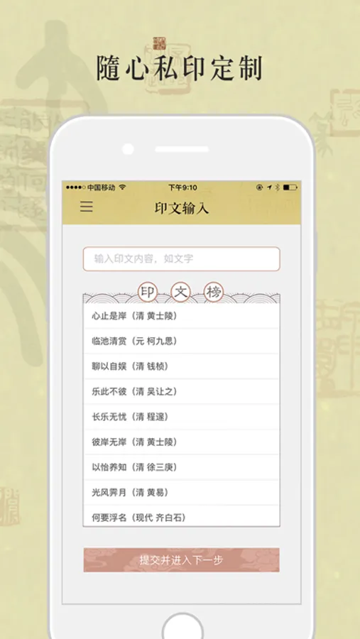 最终, 用户在体验虚拟在线篆刻之后通过篆刻定制的方式得到拥有个人印记的篆刻印章。