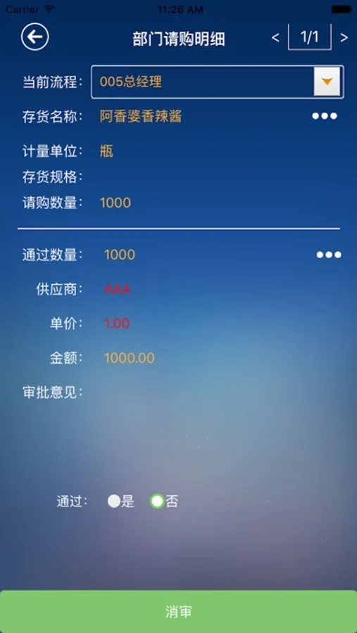 该应用是《合泰酒店后台管理软件》的移动应用客户端。主要功能包含:酒店部门请购单(pr单)与厨房请购单的审批、定价、叫货等操作,企业中高层无论何时均可签字审批请购单。支持单项不通过、退回,可查询存货历史采购信息。还包含出库领用单的流程审批、部门保修、接单、销单等相关功能。同时包含资产二维码盘点扫描等。在报表方面,拥有更多丰富的展现,可随时查询部门请购单状态、系统收货情况以及存货单价。