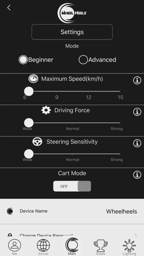 The Wheelheels app is giving users the possibility to interact with their Wheelheels-products, letting them change settings and monitoring technical data inside of the mobility devices.