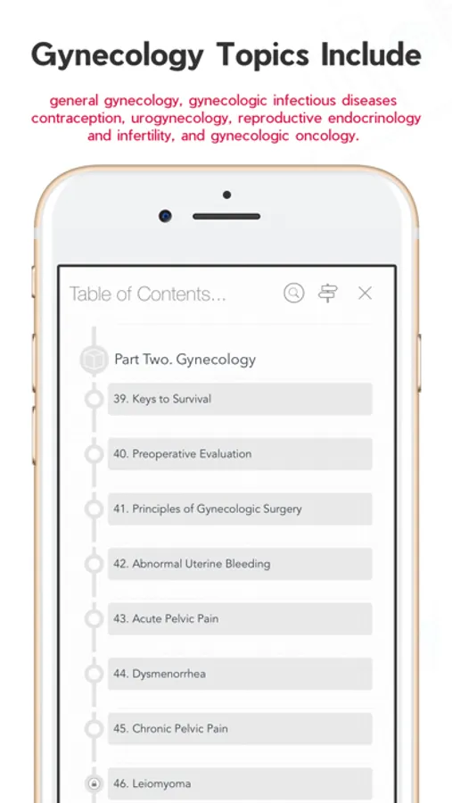 Based on print ed. and includes interactive algorithms, useful formulas, patient notes, top ten work-ups, common calls and complaints, key points on most common problems, essentials of "what not to miss". Download the FREE app and view selected topics (Approximately 10% of the content is viewable in the free app and tapping on the locked topic will launch the in-app purchase screen).
