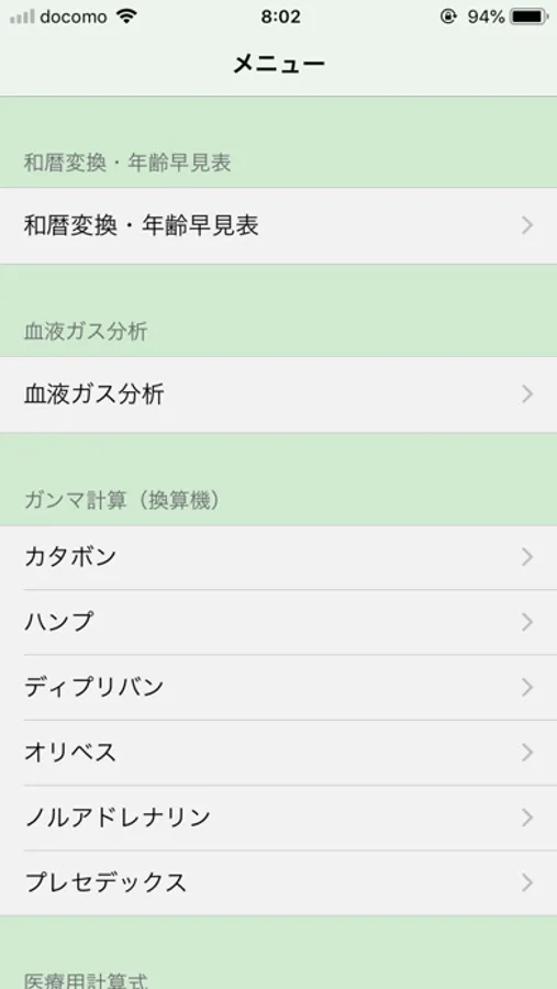 医療現場で役にたつ機能をまとめたアプリです。①西暦・和暦変換年齢計算 ②血液ガスとの自動判定機能 ③薬物の点滴投与の際のポンプダイアル設定とガンマ速度の自動換算機能 薬物には、ドパミン・ハンプ・オリベス・ディプリバン・ノルアド・プレセデックスがあります。