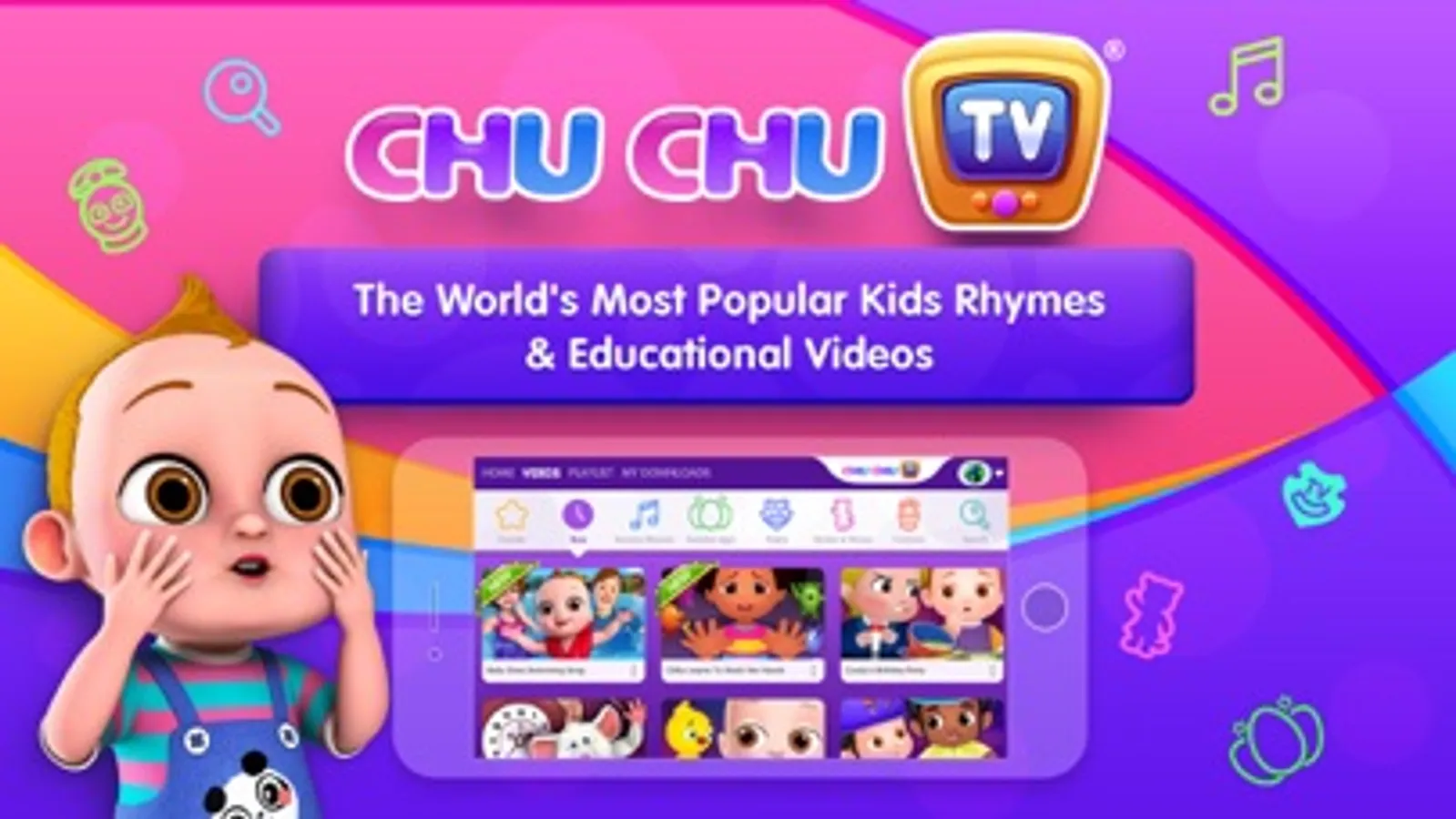 ChuChu TV - the world's most popular kids rhymes and educational songs are now available as a new Nursery Rhyme Video app. All your favorite cartoons are now available in this kid-friendly application. ChuChu TV offers hundreds of colorful educational rhymes for children across various age groups: toddlers (0-3 years) and preschoolers (3-5 years). Our cartoons are developed in such a way so as to make kids rhyme learning experience fun and creative.