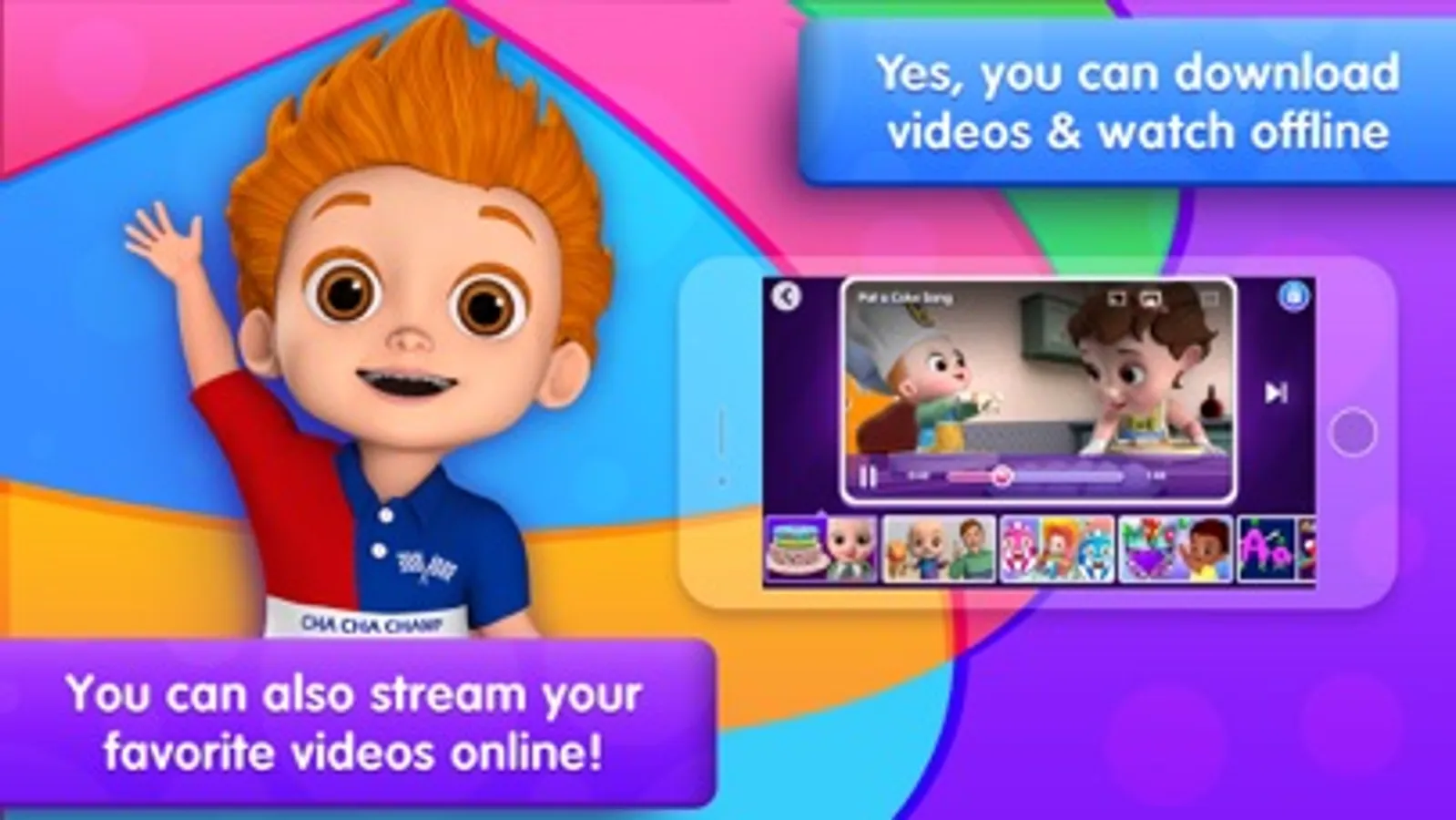 Download and watch offline! All Our Videos on YouTube are now available to download on your devices to watch without an internet connection (offline). Reduce your data usage while outdoors or traveling. Just download your favorite episodes and watch them anytime, anywhere. Kids’ favorite characters like ChuChu, ChaCha, Chiku & Chika and our animal friends – Harlo, Plucky, Spotty, Chippie & Abby - are here to entertain kids all over the world.