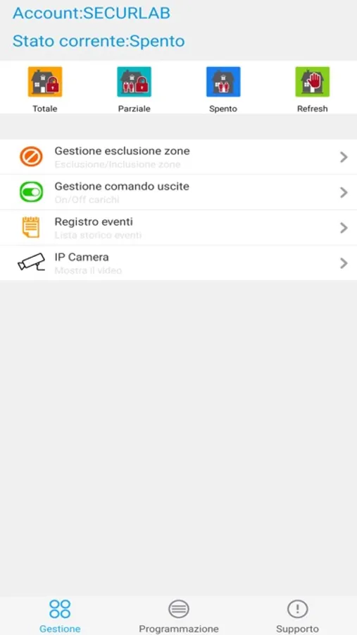Con l'App Securlab Plus non è necessario recarsi sul pannello di centrale per eseguire programmazioni, consultare la memoria eventi, memorizzare e cancellare le zone radio, comandare uscite e visionare le telecamere. L'App Securlab Plus può memorizzare illimitati profili di centrali Securlab.