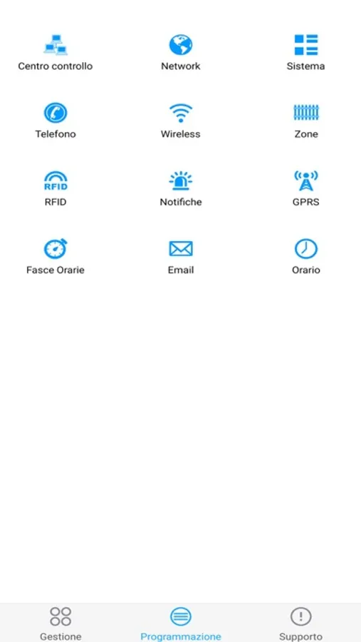 8) Totale programmazione dei parametri di centrale (compresa gestione zone radio)