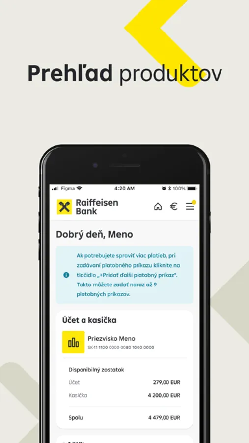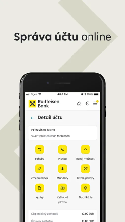 Terms of use for Internet Banking are given in Raiffeisen’s terms and conditions. Raiffeisen bank is Tatra banka, a.s., organizačná zložka podniku - Raiffeisen banka.