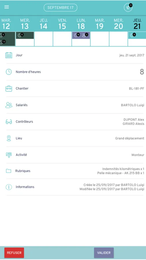 - Les chefs d’équipes n’ont plus qu’un contrôle et une validation des heures déclarées à effectuer.