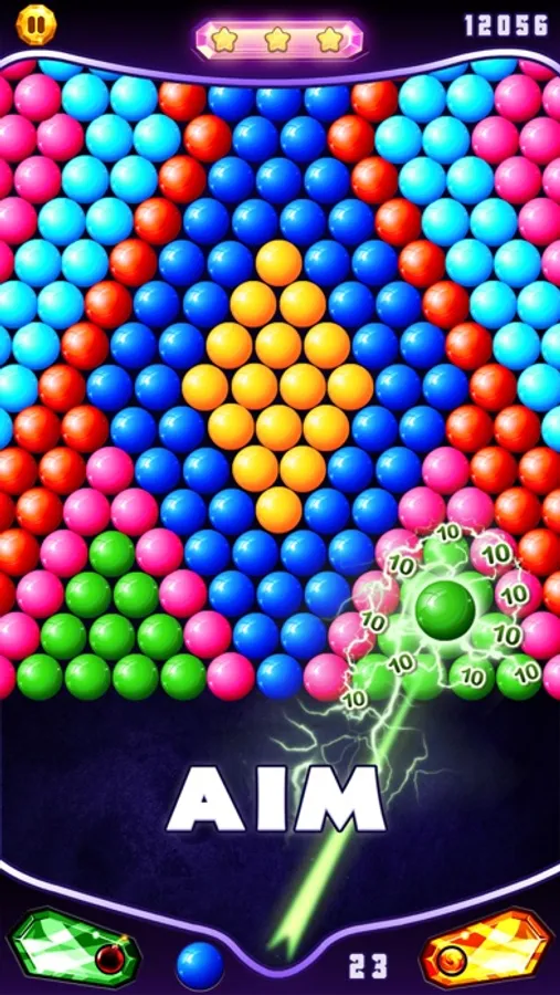 Drag your finger to move the laser sight in the direction of the bubbles. Lift your finger to take a shot. Match at least 3 bubbles of the same color to pop the group and win points. Shoot and pop all the colored bubbles to level up.