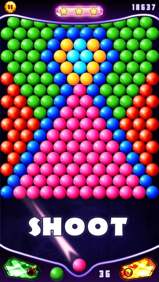 Beat all the challenges and win hard levels. Reach high scores and try to get 3 stars on every level. You can swap bubbles without limit, simply tap on your bubble to change its color.